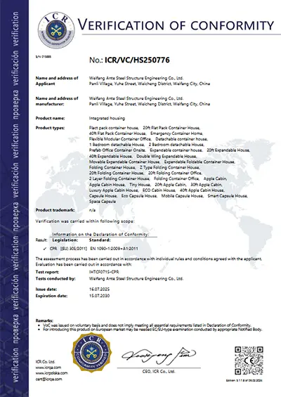 Construimos 120 unidades de cabaña de manzana en Canadá en 2024, exportamos 500 unidades una casa de contenedores de paquete plano a Rusia en 2024, y construimos 800 unidades de refugio cooperada con el gobierno iraquí en 2023, construyó 50 unidades una casa de contenedores de paquete plano en el Reino Unido.